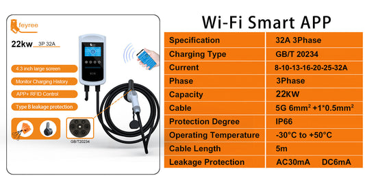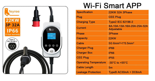 Feyree portable 22kw ev charger 3Phase Type2 Portable EV Charger Wi-Fi APP Control EVSE Charging Box Charging Station for Electric Car Charger