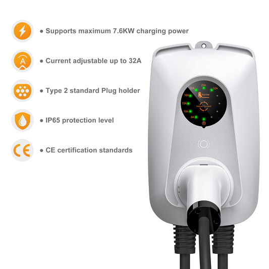 Feyree 32A single phase 7kw fast ev charger adjustable current type 2 IEC 62196-2 wall-mount electric vehicle charging station