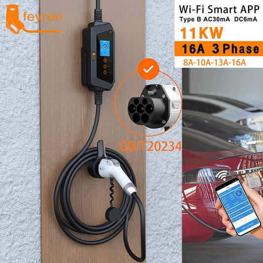 Feyree 11kw WIFI APP ev charger portable AC charging station